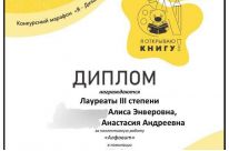 Поздравляем Алису (7.5) и Настю (7.3), получивших диплом Лауреатов III степени в конкурсе «Я открываю книгу» в рамках конкурсного марафона «Я-дизайнер» фестиваля «Московский кораблик мечты»!
